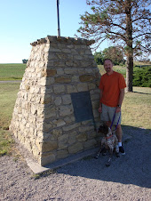 Leaving Martin, SD, we continued west on US Hwy 18, then turned south on SD Hwy 391. We passed through Pine Ridge, SD and then entered Nebraska at Whiteclay. Some might remember the TV documentary a few years back on these two towns. It involved people from Pine Ridge drinking in Whiteclay. In Whiteclay, a tiny town, we observed numerous beer trucks being unloaded, and patrons waiting for the bars to open! Continuing south on NB 87, we turned west on US Hwy 20 and passed through Ft Robinson State Park, sometimes referred to as the best state park in America, then into Wyoming. On I-25 we stopped in Casper, WY for gas and groceries. From Casper, we turned onto WY Hwy 220. We stopped along the way to take a photo of Lake Alcova and then later at Independence Rock on the Oregon Trail. Independence Rock was a significant landmark for travelers on the Oregon Trail as it marked the approximate half way point between Missouri and the Pacific Coast. It was so named because it was the goal of the travelers to reach this point by July 4 th. To do so meant that they would arrive in Oregon before the winter storms arrived. It is estimated that nearly 500,000 people passed this point between 1843 and 1869. Numerous of them carved their names in this rock. Unfortunately, time and erosion have left these marks mostly unreadable. We took a photo of one, which we could barely make out. However, there was a sign adjacent to it showing what it looked like when carved into the rock in 1904 by Ezra Meeker. Meeker at age 21 passed this way with his parents in 1852 on their way from Iowa to Oregon. It seems that at age 72, Meeker, in an attempt to draw attention to preserving the Oregon Trail, took a team of ox from Oregon to Missouri. Stopping at Independence Rock, he carved "Oregon Trail" in the rock. Photo of Meeker's original carving, and the sign. The sign shows the way the carving appeared in earlier years. Also photos of Independence Rock from a further distance, and a photo of the Oregon Trail as it passes the rock. This stop was among the most favorite for Tinsel. Here, she saw many, many rabbits. It was difficult trying to get her to move on the trail from the parking area to the rock as she was on a continuous point. She is a pointer after all! Also, a photo of Richard pointing as well. At dusk we arrived at our destination for the night, Lander, Wyoming.