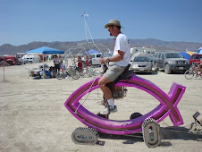 "The truth, though, is that Burning Man is an ideal place for self reflection and self transformation, whether substance aided or not....Friends of mine have changed their names, their professions, and their entire lives at Burning Man. And not because they were stoned or tripping, but because Black Rock City....has a tendency to expand horizons, reveal possibilities, and question the assumptions most of us make about how we're supposed to live our lives. The freedom (at Burning Man) is more then just freedom from conventional economic life, though, yes there are some naked people running around on drugs, because the culture of Black Rock City is a very, very liberal one. (It is not free of law enforcement...) Of course, how people choose to exercise that freedom is up to them. For every NPRAOD, I'd guess there are people wishing they had the courage to do so, one person playing the violin on a sofa bed in the middle of the desert, two people cooking pumpkin ravioli, and another person writing the name of her beloved on the wooden walls of the Temple." For more of that blogger's description of Burning Man, go to www.huffingtonpost.com/jay-michaelson/the-truth-about-burning-m_b_279464.html (the space between m and b and 2 are: _ ) One final note from me (Steve), if you are reading this and do not see the photos, please be patient as it takes some time to upload the photos.